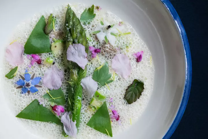 Le chef nous a fait prendre un chemin très végétal. La saveur, c'était comme si nous étions dans un potager de fines herbes et très odorant. Le chemin ou le vent des alizés nous ont conduit sur la côte rochesse ou nous attendait un merveilleux bouquet de langoustines. Puis direction la pointe de la Bretagne où mer et terre se mêlaient. Nous arrivâmes en pleine mer ou un poisson noble, le saint pierre était accompagné le légume de saison, l'asperge. Pour finir un défi audacieux, mariage du petit pois et du dessert printanier. Les guides toujours à l'écoute et toujours égaux à eux mêmes. Je suis chanceux d'avoir pu parcourir ce nouveau chemin.Christian, le Vendredi 02 Mai 2025 à 19h30.